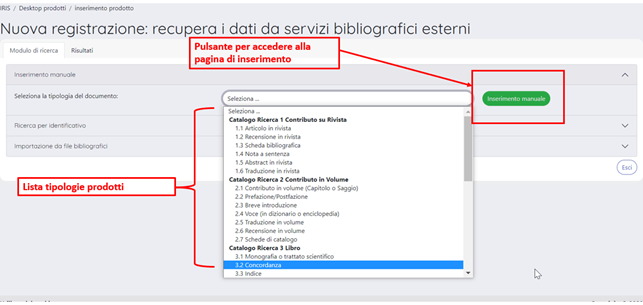 - Ricerca libera da banche dati: i criteri di ricerca sono anno, titolo e autori/editore della pubblicazione. Utilizza questa modalità di ricerca solo se non hai i codici identificativi della pubblicazione quali DOI, codice Scopus, codice WoS.